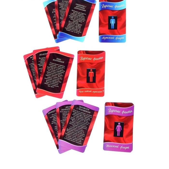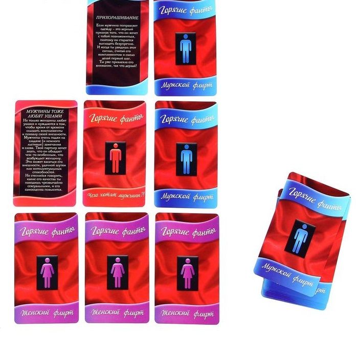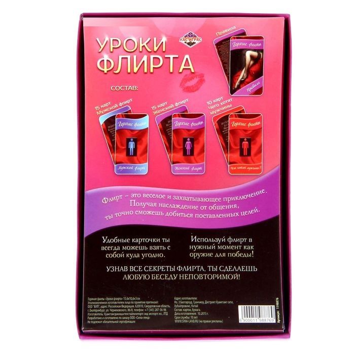 Каждый из нас хочет чувствовать себя уверенным во время знакомства. Это чувство помогает заинтересовать собеседника и достичь поставленных целей. В нашем наборе собраны самые действенные методики флирта, применяя которые, вы с лёгкостью поймёте, чего ждёт от вас новый знакомый, а также сможете намекнуть ему о своей готовности к более решительным действиям. Походка, взгляд, улыбка, жесты… флирт есть везде! И он будет успешным, если вы узнаете все его тонкости. Теперь вы очаруете любого! Также вы научитесь с первого взгляда понимать, как относится к вам собеседник, и узнаете, чего хотят мужчины в постели. Флиртуйте и получайте наслаждение от новых ощущений! В комплекте: 15 карт «Мужской флирт» 15 карт «Женский флирт» 10 карт «Чего хотят мужчины» правила.