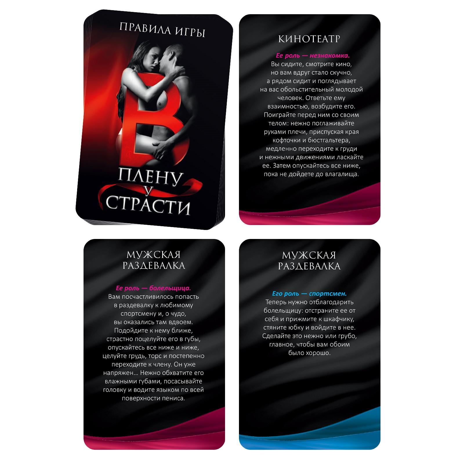 Ролевая игра для него и для неё. В этой игре собрано 30 сценариев ролевых игр для пары. Кем вы хотите быть сегодня? В какой позе желаете это сделать? Попробуйте всё и сразу или растяните удовольствие надолго. Узнайте друг друга с новой стороны и окунитесь в мир наслаждений! Воплотите свои самые смелые фантазии! Вытягивайте карточки, перевоплощайтесь и наслаждайтесь друг другом. На одной стороне каждой из них вы найдёте роль для девушки и описание её действий, на другой — то же самое для мужчины. Ознакомьтесь со всей информацией и воплотите сценарий в реальность. В комплекте: 30 карточек, правила игры.