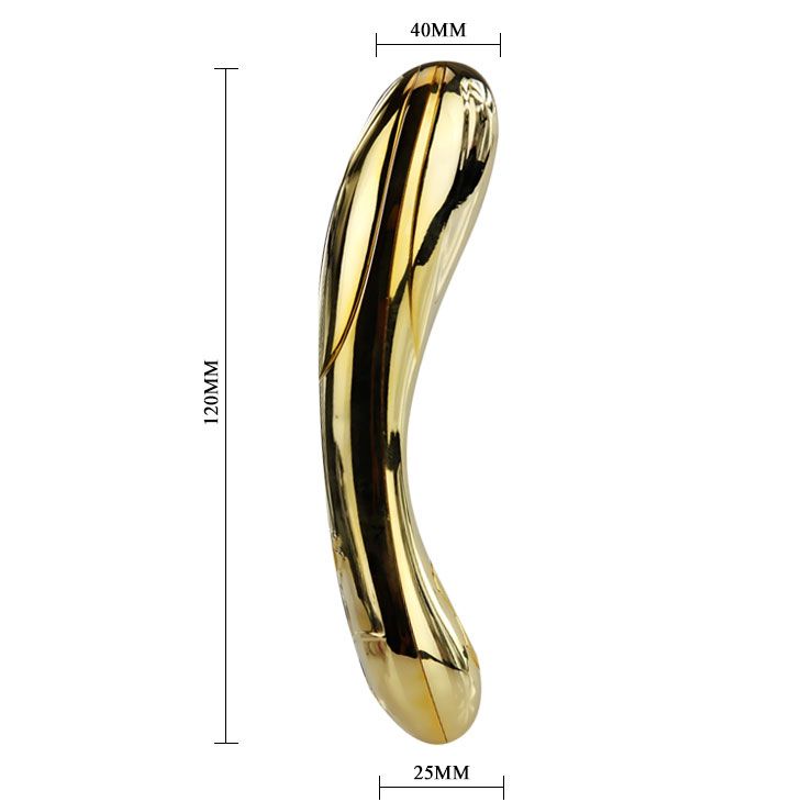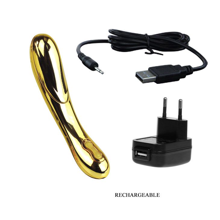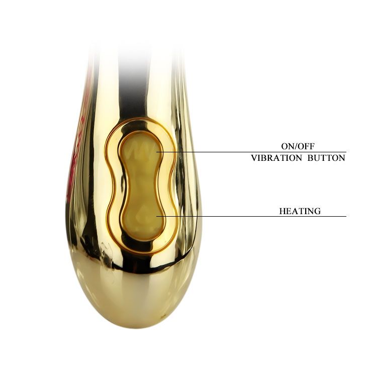 Это секс-игрушка для девушек, которые знают себе цену. Поверхность вибратора покрыта золотом 24 карата (соответствует 999 пробе)! Он имеет роскошный эргономичный дизайн, загнутая головка эффективно стимулирует точку G. Удобно лежит в руке, две кнопки управления расположены так, что переключать 12 режимов вибрации можно легко и непринужденно. Функция нагрева работает так быстро, что вы не успеете моргнуть глазом: пара минут, и это королевское золото нагревается до 45 градусов, разливая тепло по вашему телу вместо со сладкими вибрациями и пульсациями. Встроенный аккумулятор перезаряжается при помощи адаптера, который входит в комплект. Упакован в роскошный подарочный сундучок. Размеры сундучка - 21 х 12,6 х 11 см.