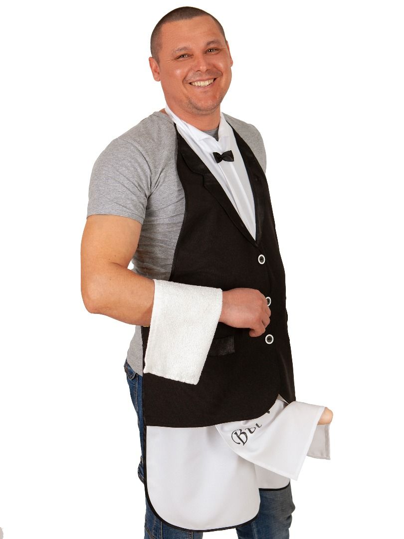 С изнаночной стороны на уровне второй пуговицы находится колечко. Если рукой потянуть за это колечко, фаллос поднимается (при этом действие руки невидно). При отпускании колечка, фаллос опускается в висячее положение. В комплекте: фартук, фаллос.