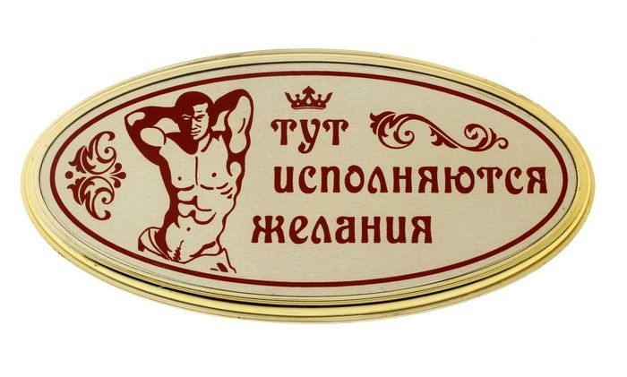 Что может скрываться за дверью с интригующей табличкой «Тут исполняются желания»? Стоит зайти и проверить лично. Ведь у каждого из нас есть свои желания и мечты, которым пришло время сбываться. На обратной стороне таблички имеются специальные выемки для креплений, также в комплекте идет двусторонний скотч, что позволит легко и удобно повесить табличку на дверь. Дверная табличка отлично подходит как для подарка, так и для личного пользования, ведь встретить на двери такую табличку очень приятно. Размеры - 18 х 10 см.