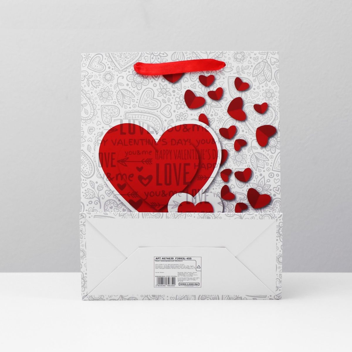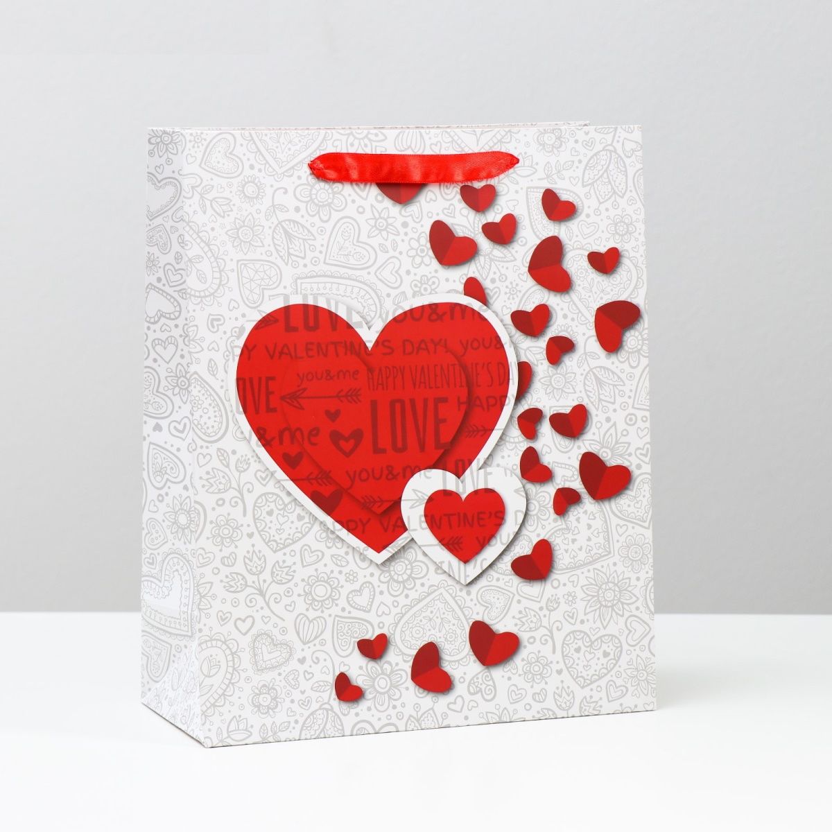 Подарочный пакет с сердечками Сима-Ленд 4674639 (32×26×12 см)