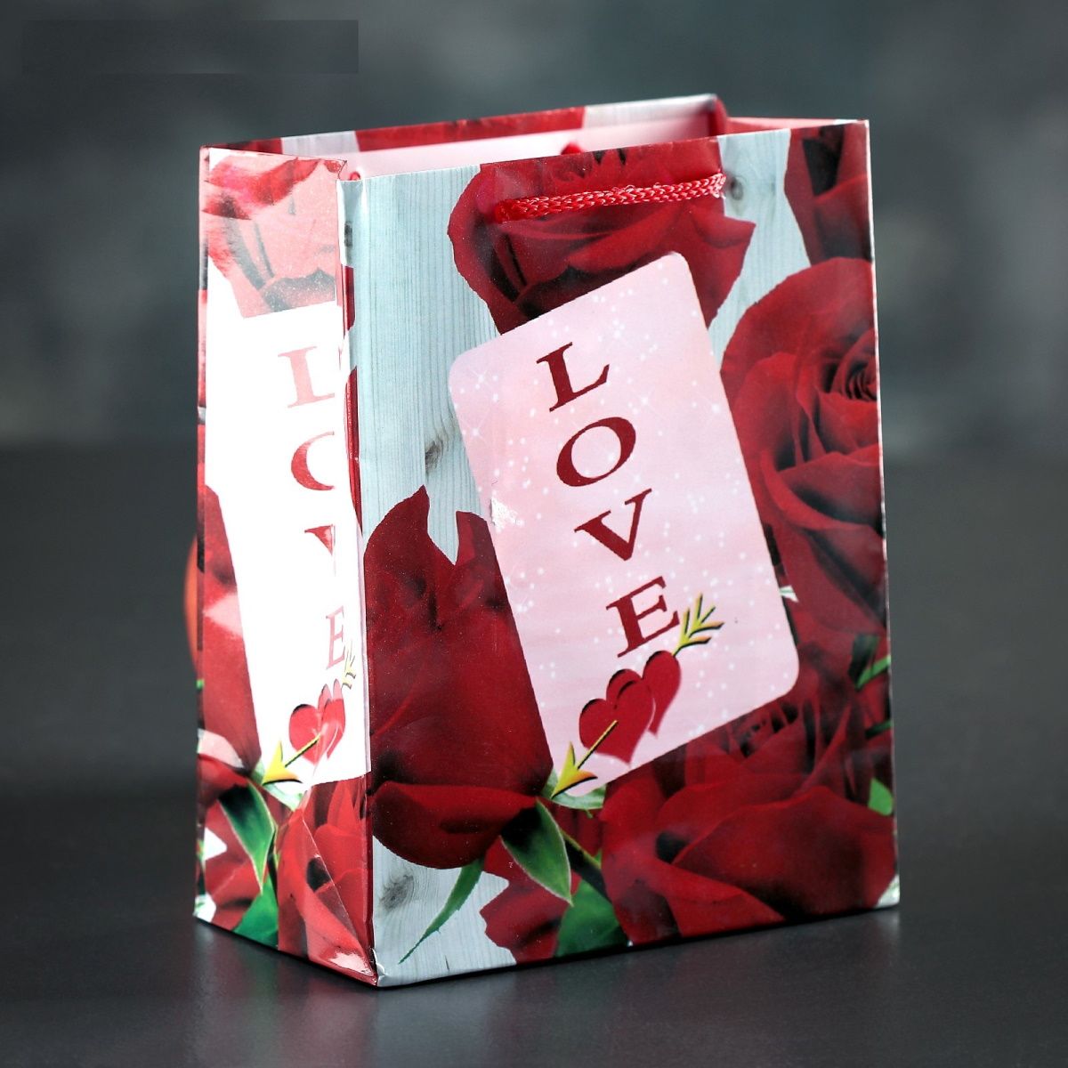 Подарочный пакет с розами Сима-Ленд «Love» 3821266 (15×12×5 см)