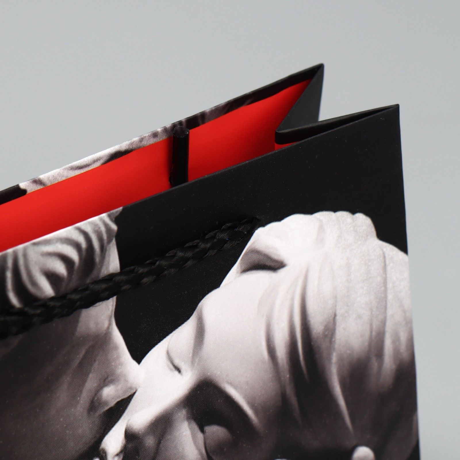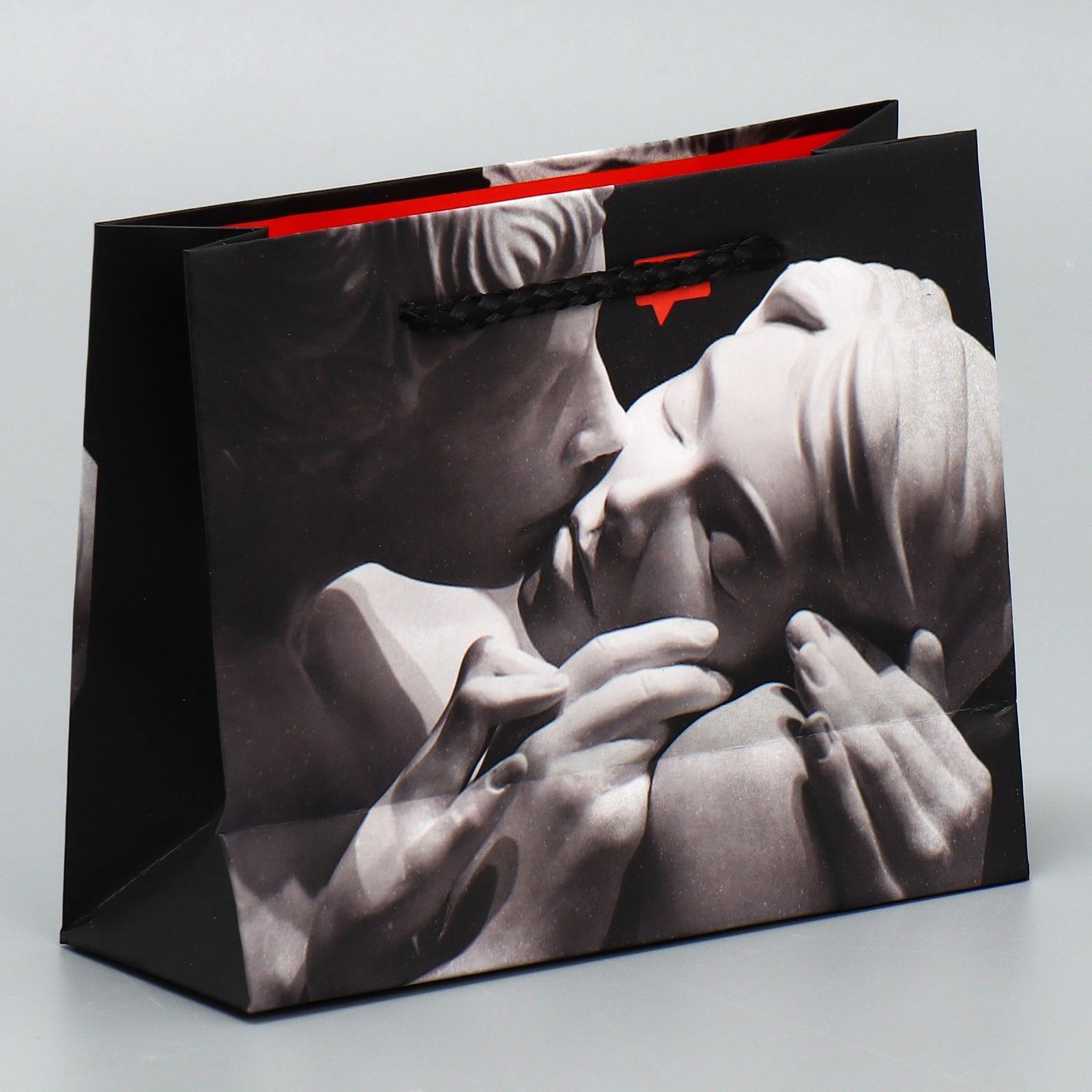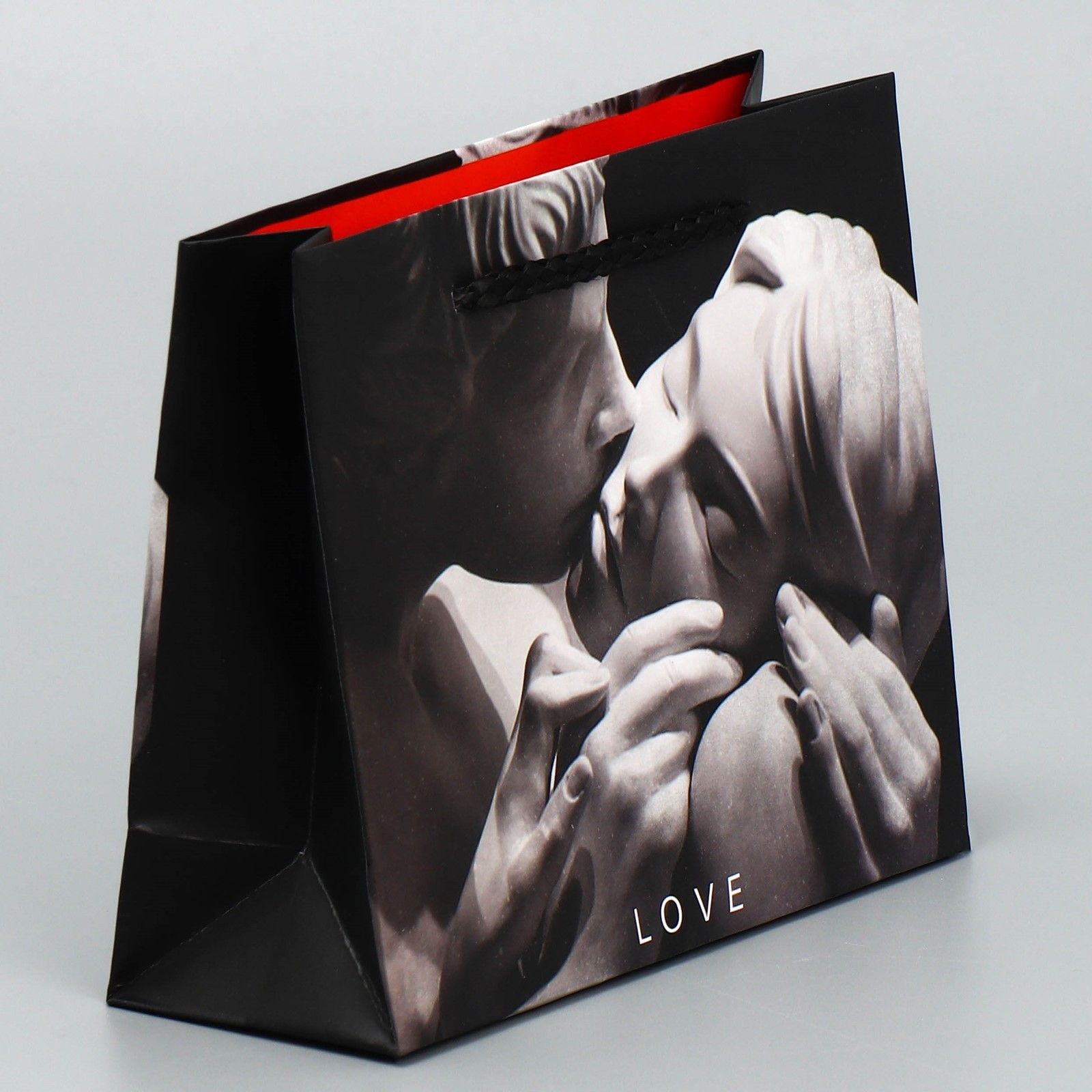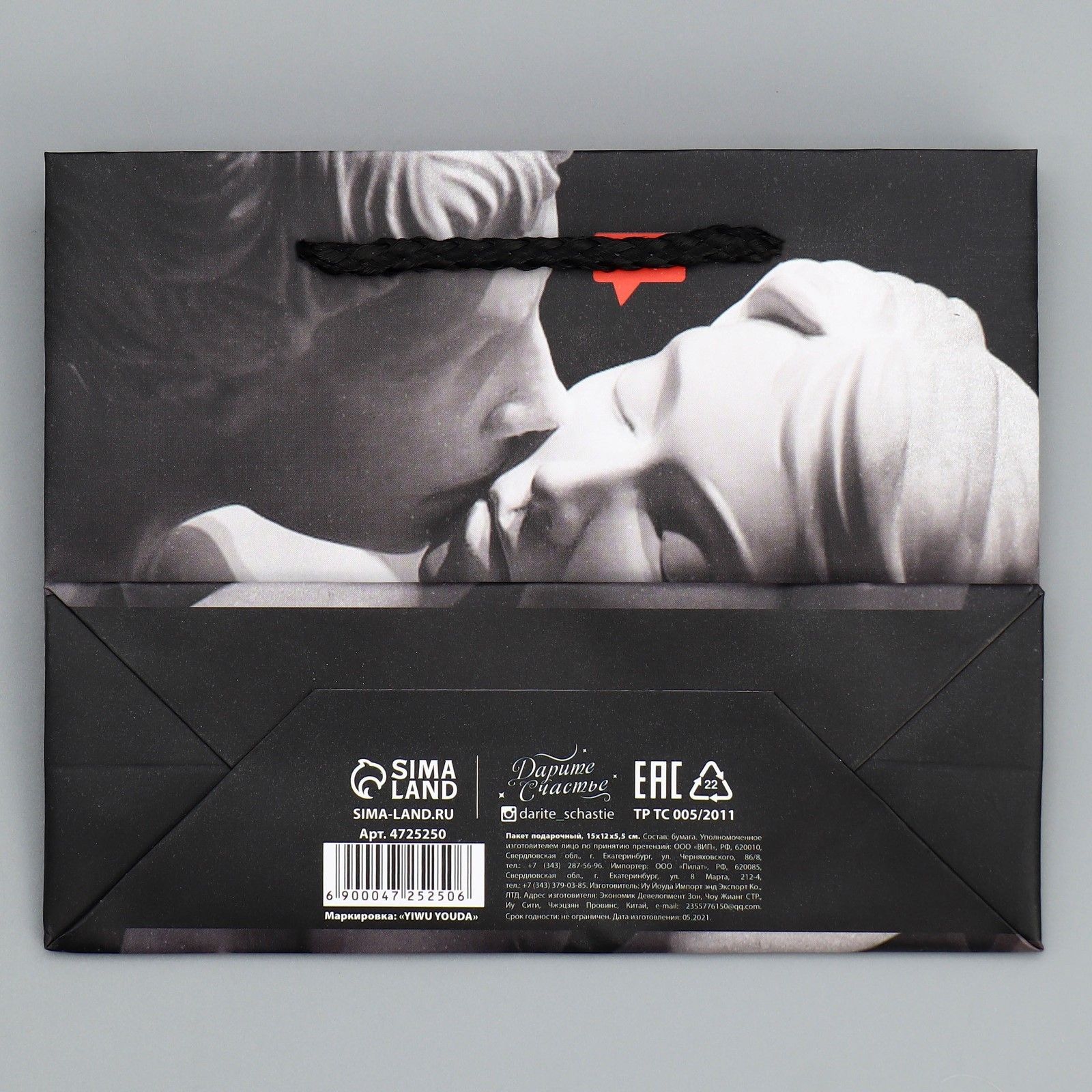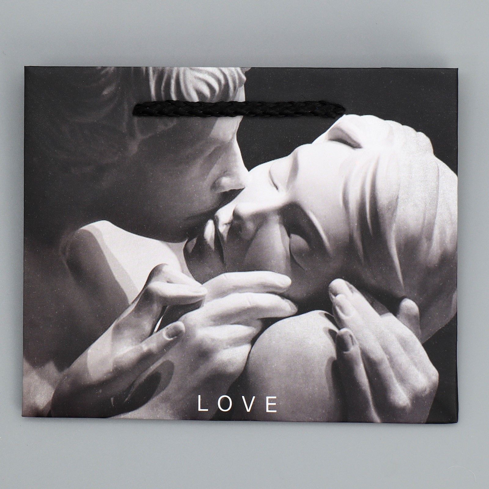Маленький чёрно-белый бумажный подарочный пакет Сима-Ленд «Love» 4725250 (15×12×5,5 см)