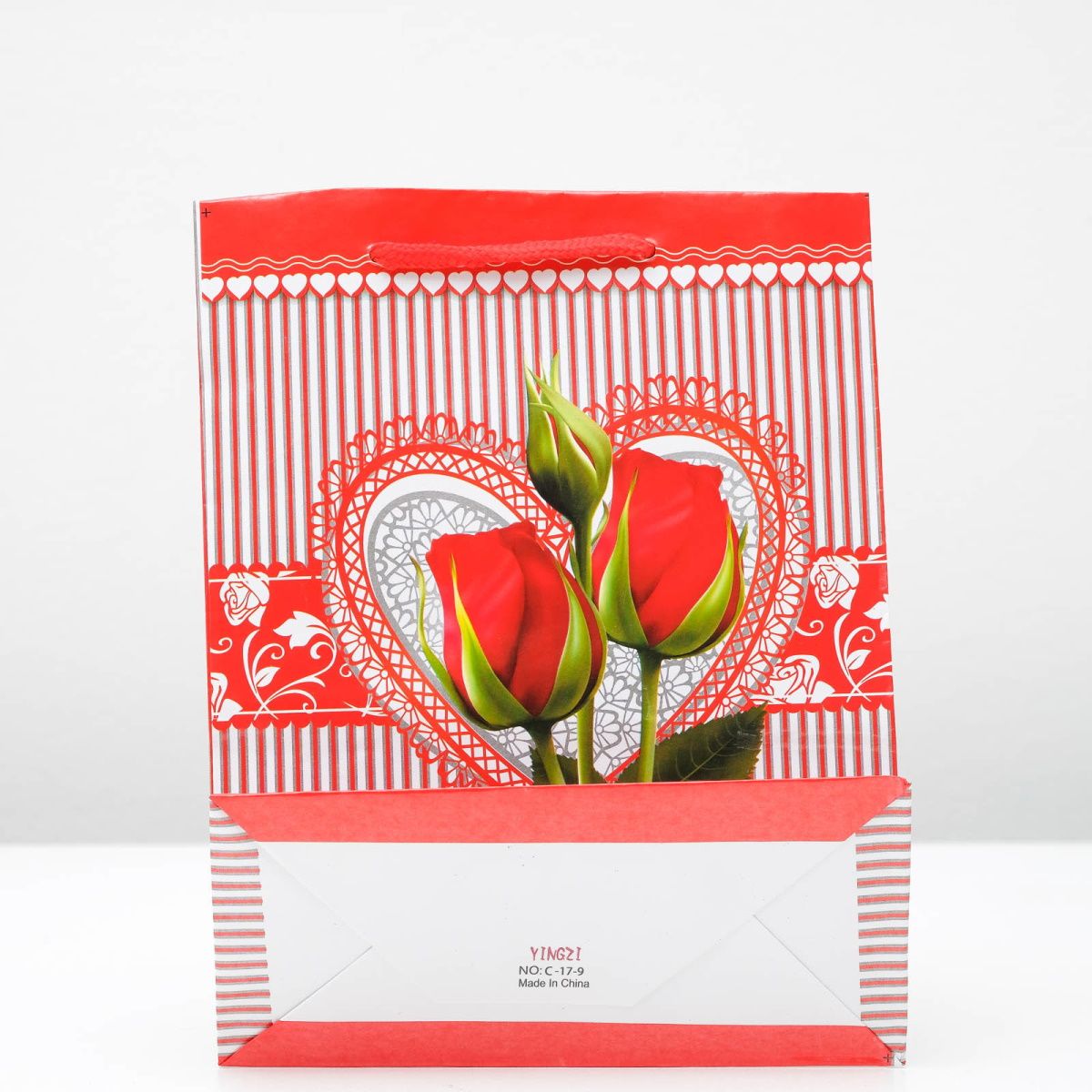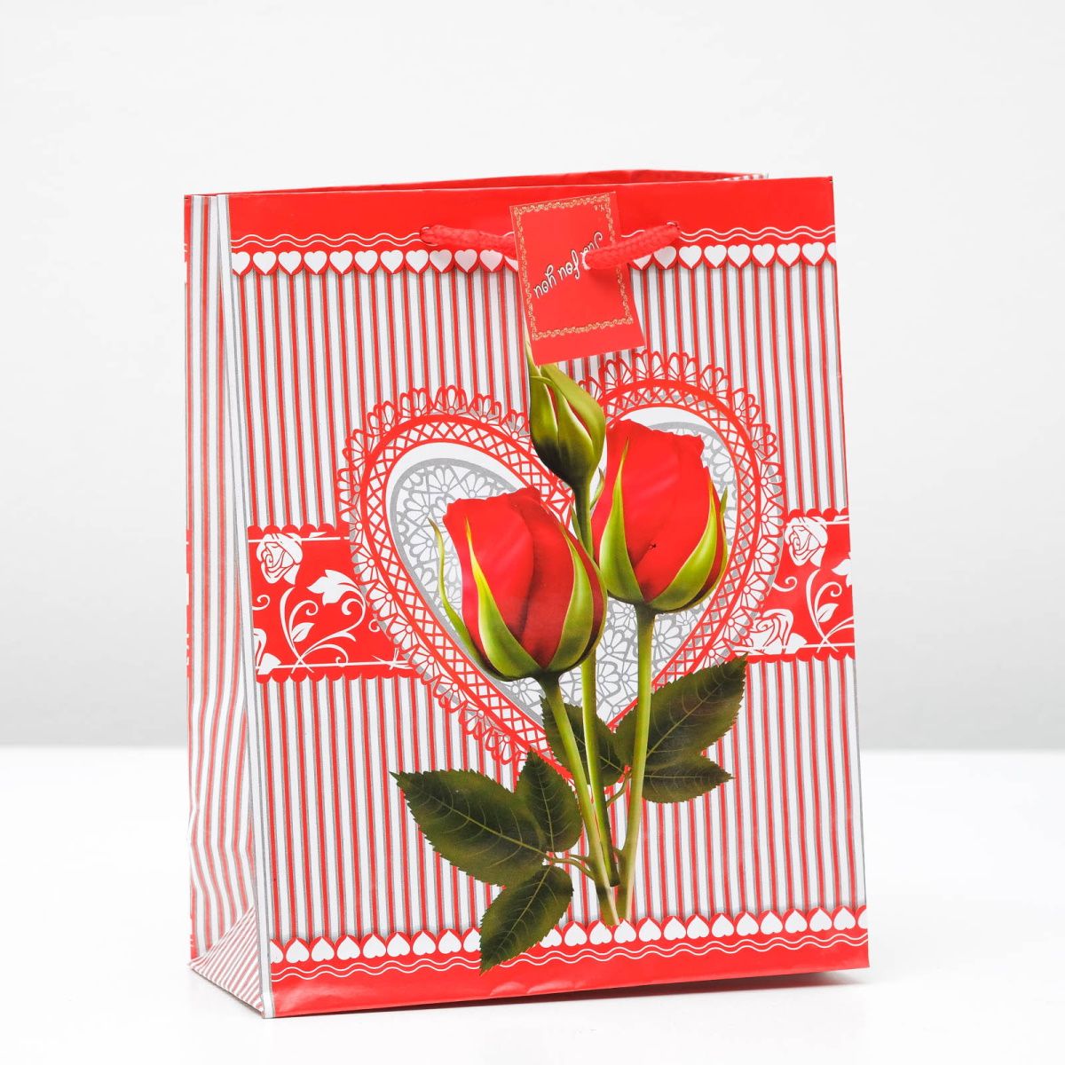 Красный подарочный пакет Сима-Ленд «От всего сердца» 3821384 (23×18×8,5 см)