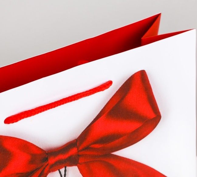 Бело-красный подарочный пакет Сима-Ленд «Счастье мое» 3639807 (18×23×8 см)