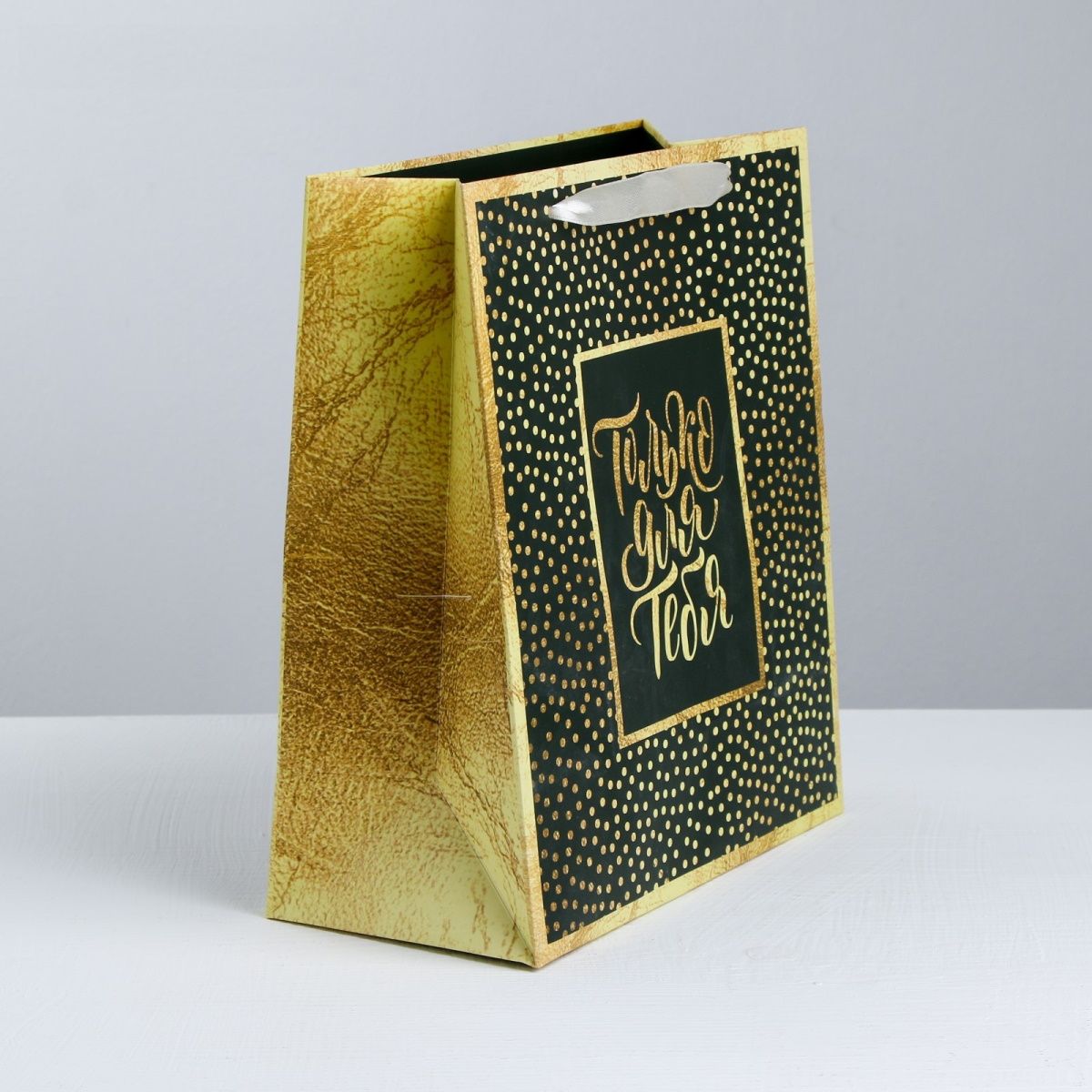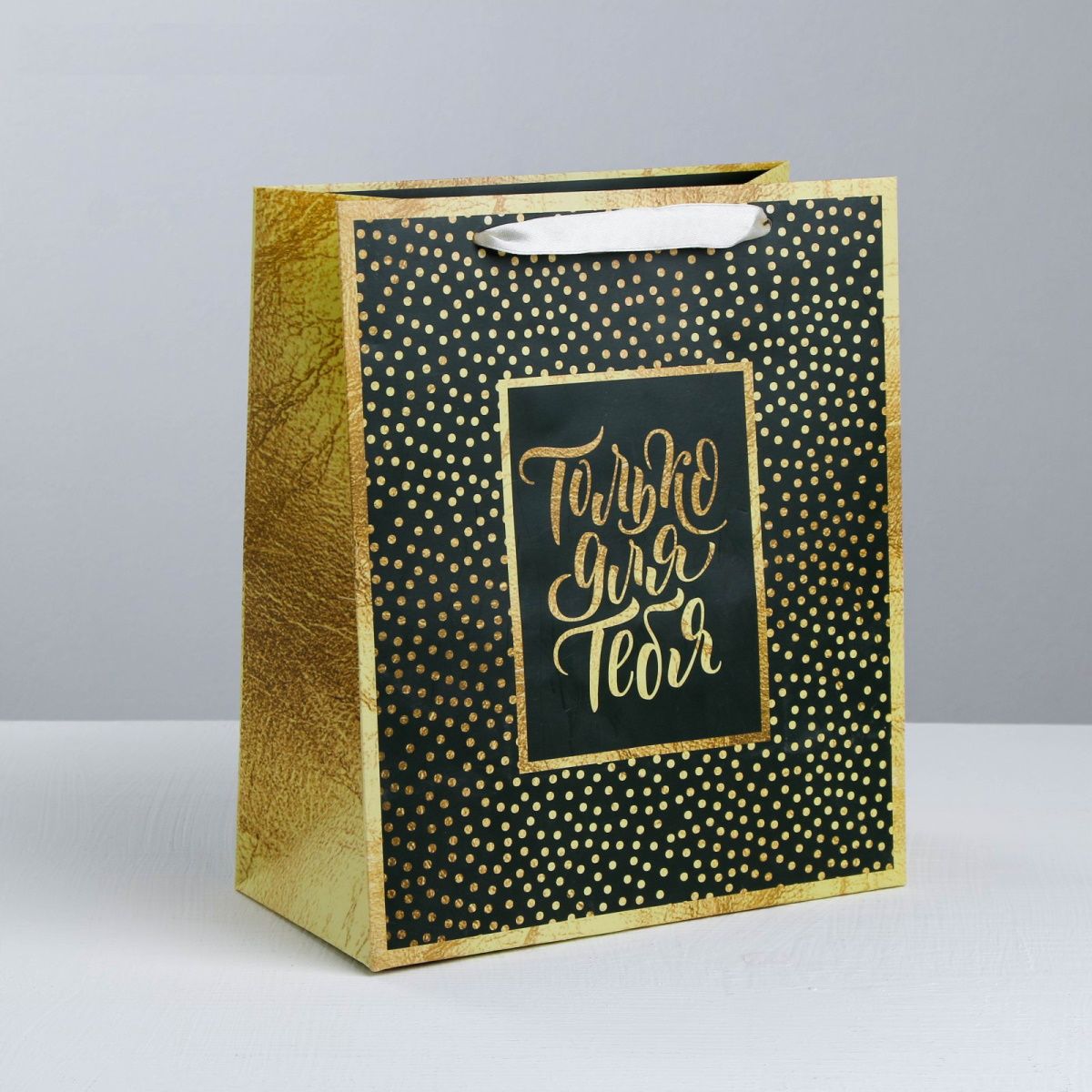 Золотисто-чёрный подарочный пакет Сима-Ленд «Все ради тебя» 3680619 (15×12×5,5 см)