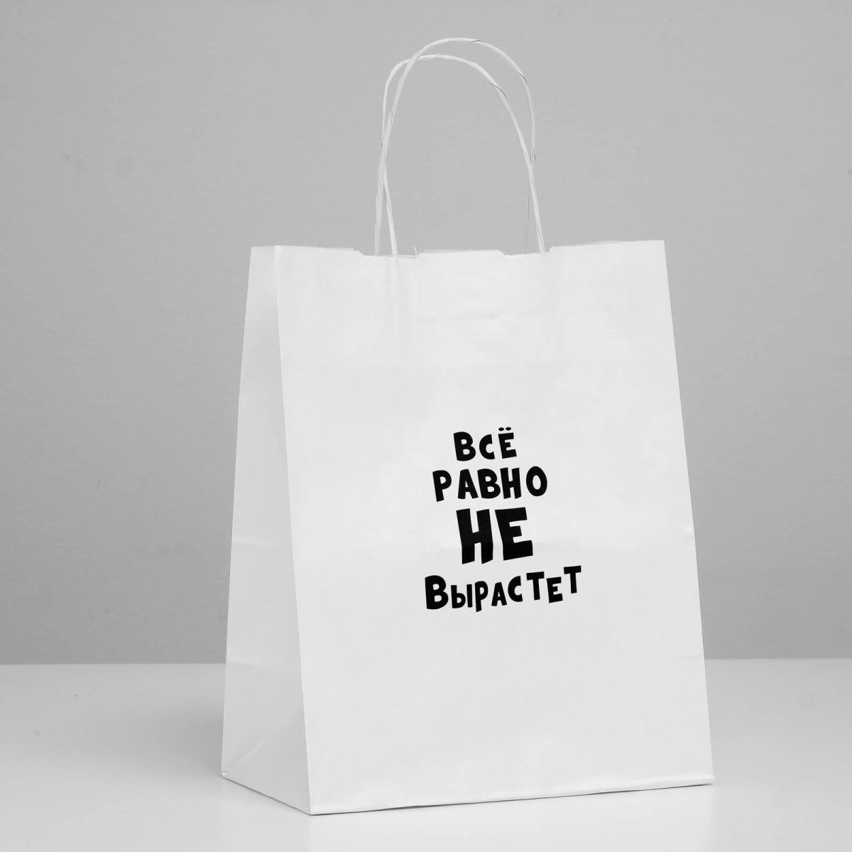 Белый подарочный пакет Сима-Ленд «Все равно не вырастет» 4773963 (30×24×14 см)