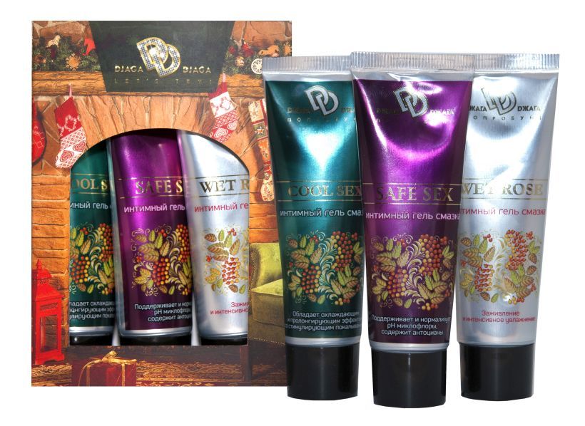 Подарочный набор включает в себя 3 лубриканта наивысшего качества. Лубрикант Cool sex для мужчин возбуждает и продлевает половой акт, женщинам подарит ощущение прохлады и легкого покалывания. Специально разработанный лубрикант Safe sex для женщин (нормализует PH-микрофлоры) и заживляющий любрикант Wet rose, в состав которого входят натуральные экстракты. В наборе 3 интимные смазки по 30 мл. каждая.
