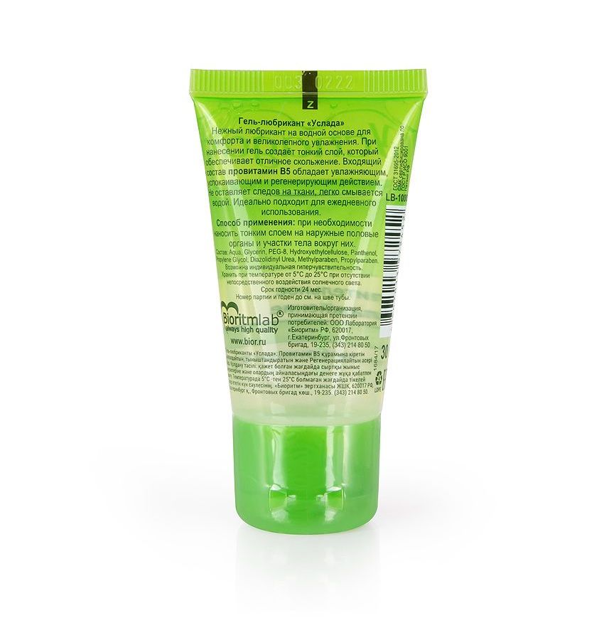 Гель-лубрикант УСЛАДА - смазывающий увлажняющий гель. Содержит провитамин В5. Применяется для увлажнения половых органов, обеспечивает их смазку и легкость скольжения. Положительно влияет на кожу и слизистые оболочки при регулярном использовании. Дает ощущение легкости и нежности. Эта смазка может применяться с любыми устройствами типа вибраторов, фаллоимитаторов, искусственных вагин и кукол. Совместим с любыми изделиями из латекса и пластика. Легко смывается водой. Не оставляет следов на одежде и белье.