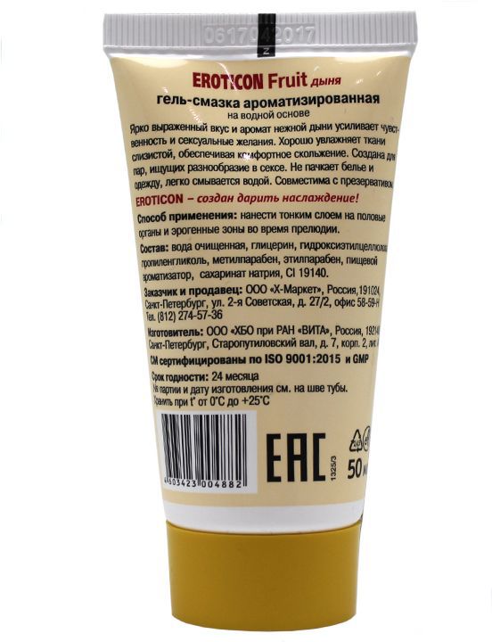 Гель-смазка ароматизированная на водной основе. Ярко выраженный аромат нежной дыни усиливает чувственность и сексуальное желание. Хорошо увлажняет ткани слизистой, обеспечивая комфортное скольжение. Создана для пар, ищущих разнообразие в сексе. Не пачкает белье и одежду, легко смывается водой. Совместима с презервативом.