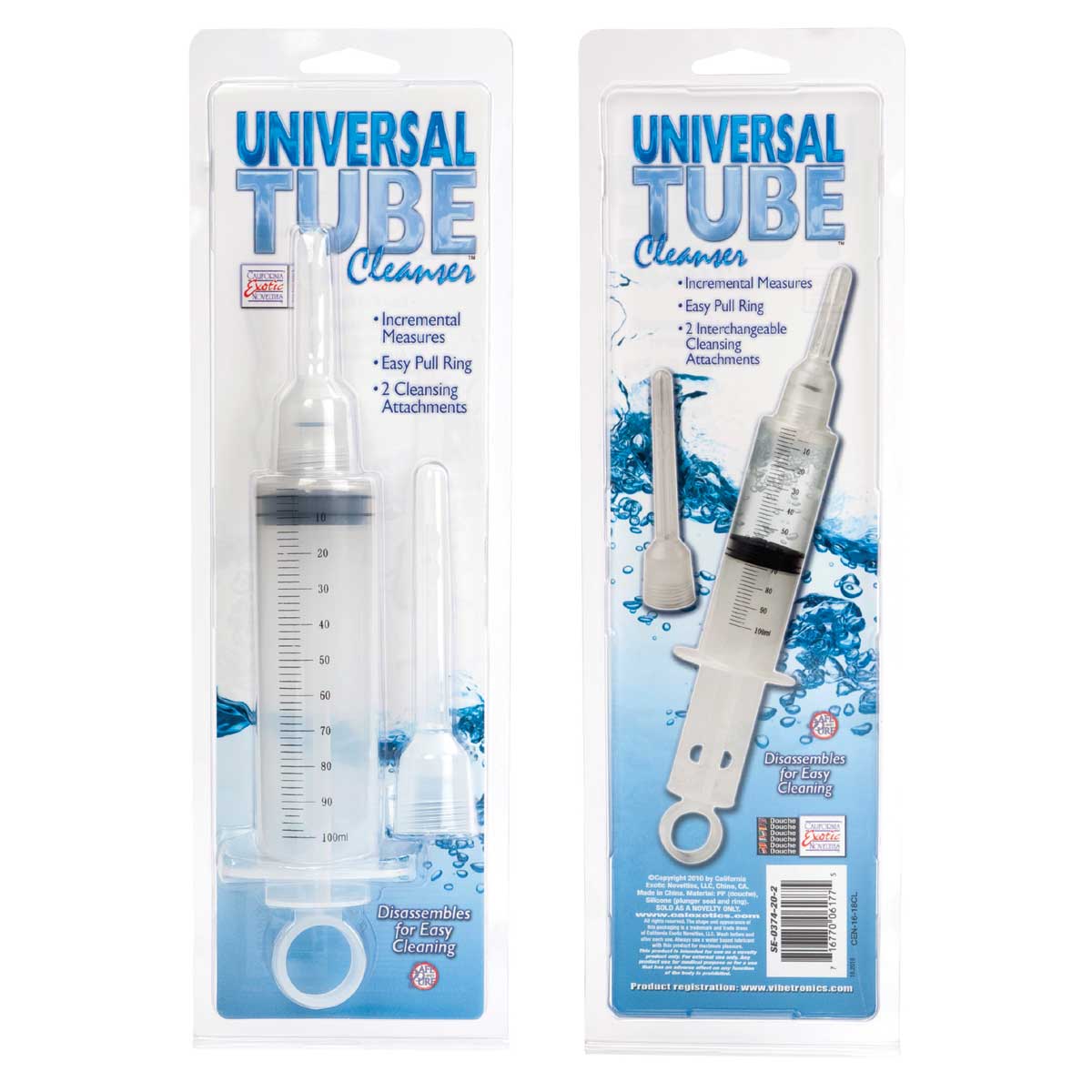 Шприц для введения любриконтов Universal Tube Cleanser имеет две насадки: длинная - 12х1 см. короткая 8х1 см. Так же имеет кольцо для более удобного использования (нажатия). Длина - 12 см. Диаметр - 1 см.