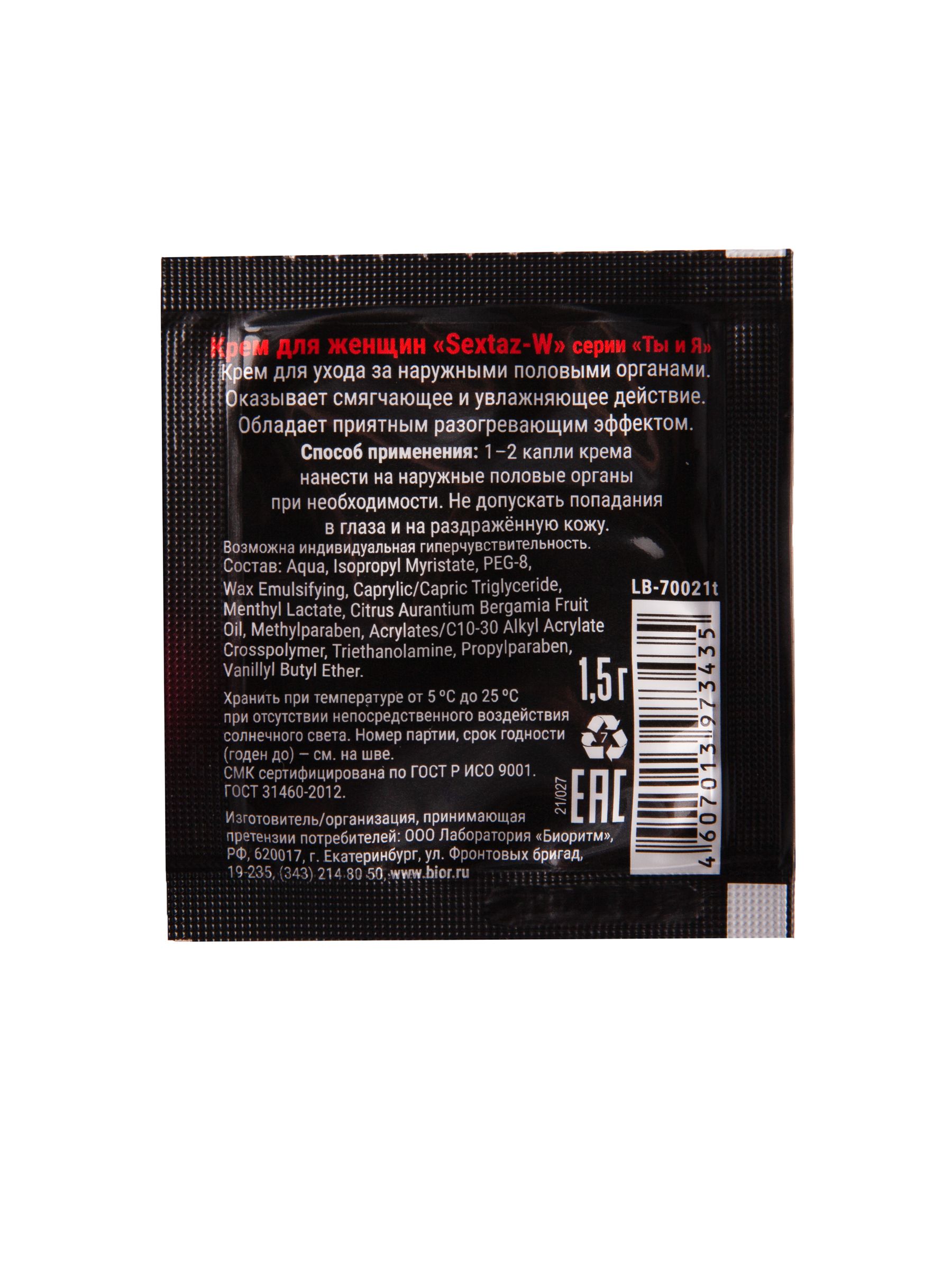 Возбуждающий крем для женщин в одноразовой упаковке Биоритм Sextaz-W LB-70021t