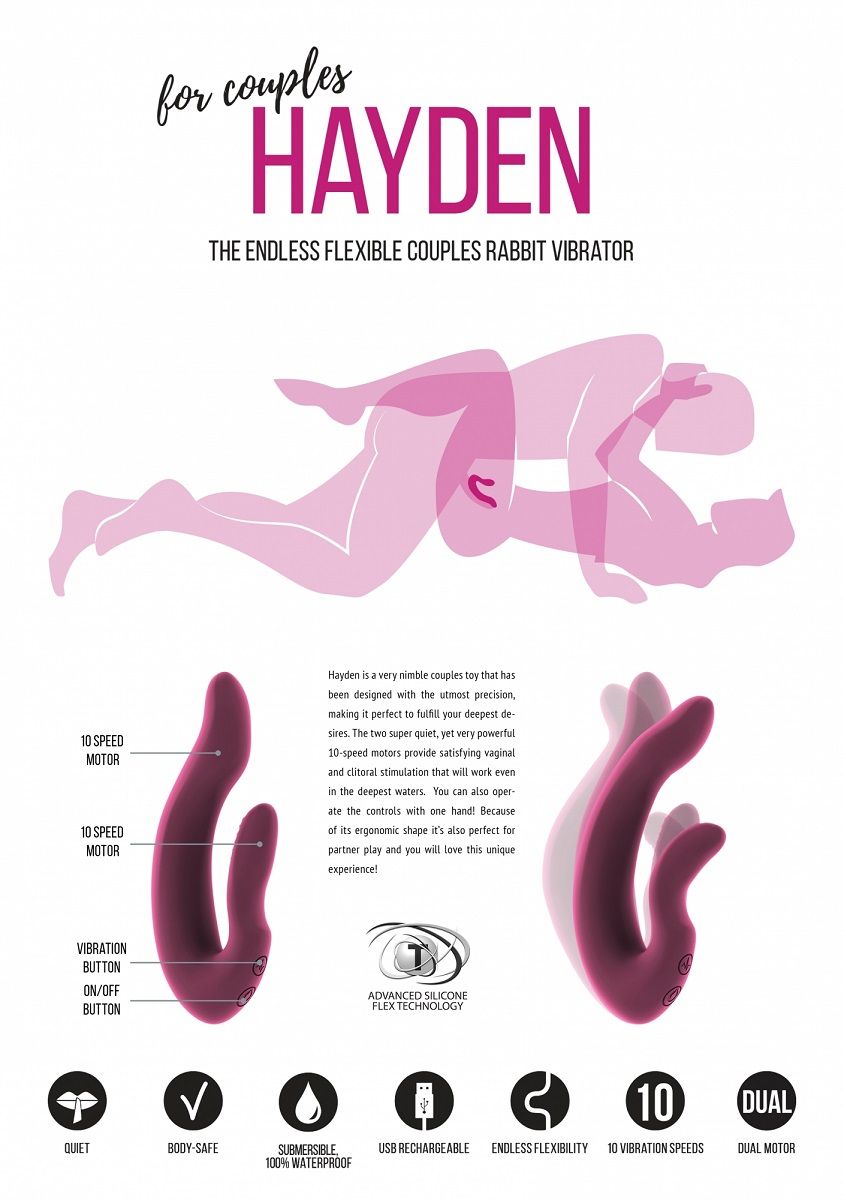 Очень гибкий вибратор для пар из нежного силикона, который быстро достигает температуры тела. Идеально подстраивается под формы вашего тела. Очень тихий и очень мощные два моторчика с десятью режимами вибрации. Легко управлять одной рукой. Рабочая длина - 11 см.