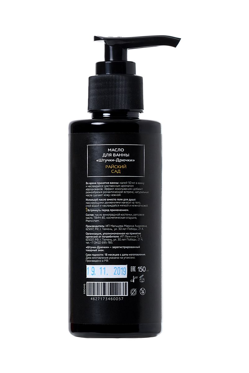 Масло для ванны и душа Райский сад с афродизиаками – прекрасный выбор для романтического вечера. Расслабляет, снимает нервное напряжение, создает романтическое настроение. При использовании в душе встряхните флакон, нанесите небольшое количество масла на свое тело или тело партнера, и приступайте к массажу. При использовании в ванной встряхните флакон, налейте 1/3 в горячую ванну, растворите, после ванны продукт можно не смывать с тела.