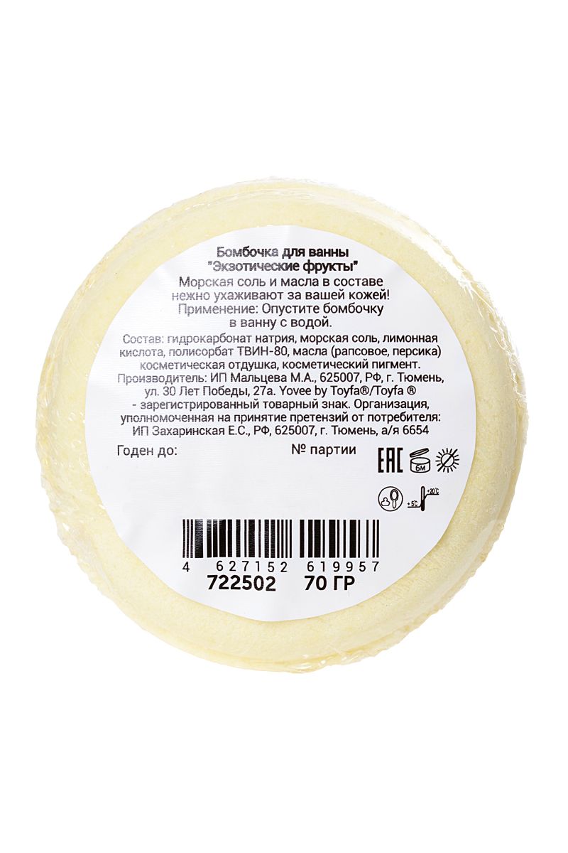 Морская соль и масла в составе нежно ухаживают за вашей кожей!Идея для свидания: Устройте свидание в тропическом стиле с коктейлями и фруктами. Пригласите вашу половинку в ванну с бурлящим шариком и насладитесь сочными ароматами и игривыми пузырьками от бомбочки!