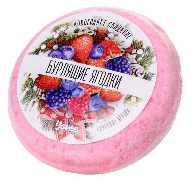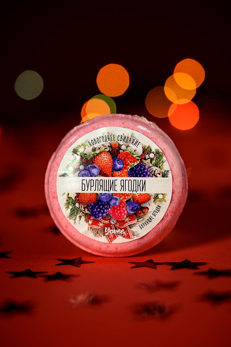 Бомбочка для ванны «Бурлящие ягодки». Морская соль и масла в составе нежно ухаживают за вашей кожей! Идея для новогоднего свидания: предложите своей половинке принять вместе ванну. Подготовьте фруктовую тарелку и окунитесь в ароматы сладких ягод и игривых пузырьков в ванной.