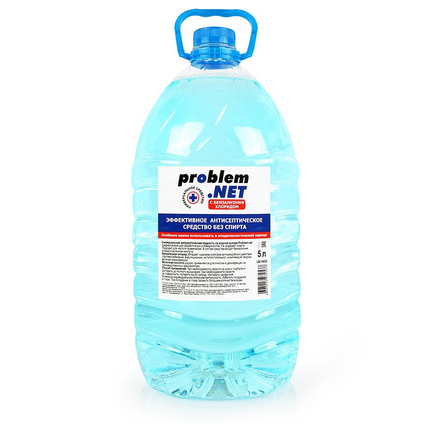 Универсальная антисептическая жидкость на водной основе Problem.net предназначена для обработки рук и поверхностей. Не содержит спирта. Подходит для частого применения. В состав средства входят бензалкония хлорид и молочная кислота. Бензалкония хлорид обладает широким спектром антимикробного действия (противогрибковым, вирулицидным, антипротозойным), инактивирует вирусы, включая коронавирусы. Молочная кислота широко применяется для очистки и дезинфекции на производственных предприятиях. Возможна индивидуальная гиперчувствительность. Избегать попадания в глаза. При попадании в глаза промыть большим количеством воды.