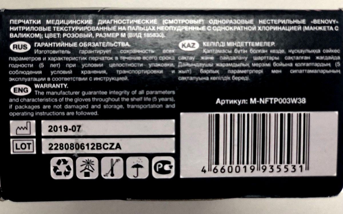 Перчатки нитриловые смотровые неопудренные текстурированные на пальцах BENOVY. Предназначены для терапевтических процедур, проведения осмотров и стоматологии. Изготовлены из нитрила, устойчивого к слабым растворам кислот и щелочей. Гипоаллергенные из-за отсутствия протеинов натурального латекса. Неопудренные для снижения риска контактного дерматита. Форма перчатки - плоская, без разделения на правую и левую руку. Манжета закатана в валик. Валик скручен вовнутрь, что препятствует скатыванию перчатки. Герметичность (AQL) - 1,5.